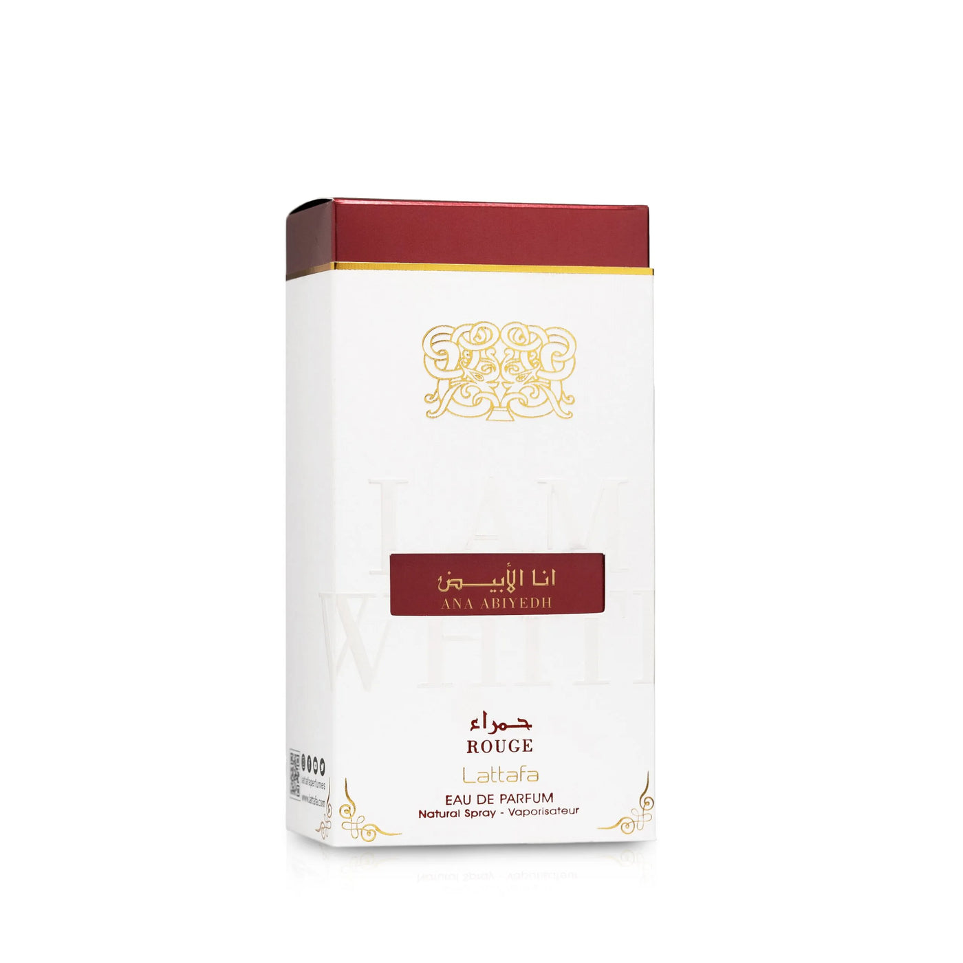 Lattafa Ana Abiyedh Rouge is a woody spicy Eau de Parfum for women and men, launched in 2016 and loved for its bright yet sensual character. This 60ml fragrance opens with a vibrant burst of nashi pear, kumquat, and bergamot, creating a fresh and juicy introduction. The heart reveals a warm, sweet blend of caramel and geranium, adding smooth gourmand depth and elegance. As it dries down, a rich base of ambergris, musk, and oakmoss delivers a long-lasting, sophisticated trail. Perfect for daily wear and special occasions, Ana Abiyedh Rouge balances freshness, sweetness, and warmth in a refined unisex scent.