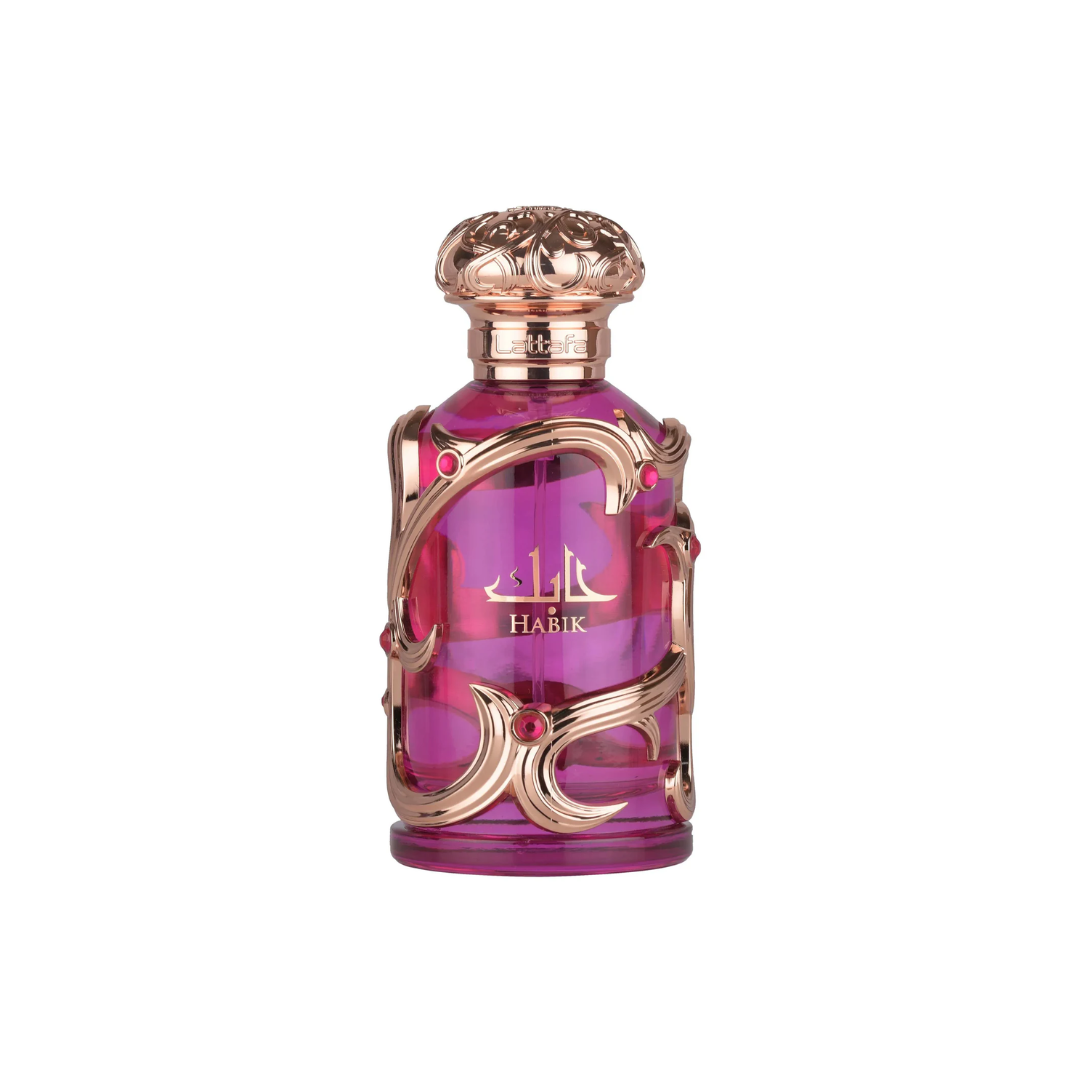 Habik For Women by Lattafa Perfumes is a charming floral fruity fragrance for women, launched in 2025. It opens with a fresh, fruity top of pear and bergamot, flows into a delicate heart of lily of the valley, jasmine, and freesia, and rests on a warm, elegant base of amber, musk, and oakmoss.